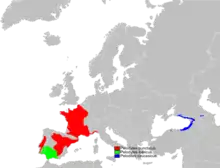 | Distribution of Pelodytidae (in black) | |