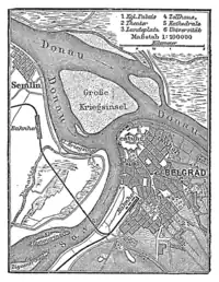 1888 map showing proximity of Zemun (Semlin), river Sava and Belgrade