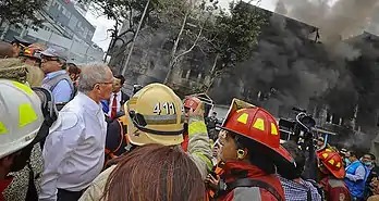 On 15 December 2017, the Congress of Peru, which was controlled by the opposition Popular Force, initiated impeachment proceedings against Kuczynski, after he was accused of lying about receiving payments from the scandal-hit Brazilian construction firm Odebrecht in the mid-2000s.[9] However, on 21 December 2017, the Peruvian Congress lacked the majority of votes needed to impeach Kuczynski.[10] After further scandals and facing a second impeachment vote, Kuczynski resigned from the presidency on 21 March 2018 following the release of videos showing alleged acts of vote buying, presenting his resignation to the Council of Ministers.[11][12] He was succeeded as president by his First Vice President Martín Vizcarra. On 28 April 2019, Kuczynski was placed under house arrest while under investigation for allegedly taking bribes from Odebrecht.[13]