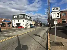 Pennsylvania Route 113 (PA 113) is a 46.9-mile-long (75.5 km) state route in eastern Pennsylvania. The southern terminus of the route is at U.S. Route 30 Business (US 30 Bus.) in Downingtown. Its northern terminus is at PA 611 in Tinicum Township. The route is signed as north–south although its exact alignment follows a northeast-southwest routing. The route serves Chester, Montgomery, and Bucks counties, passing through Lionville, Phoenixville, Trappe, Skippack, Harleysville, Souderton, and Silverdale along the way.