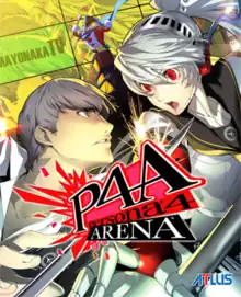 Soejima returned to design the new characters.[38] The game presented a number of firsts for Soejima's style, including drawing characters with damaged clothing and in energetic poses. Soejima helped design key art, though another artist Hanako Oribe also contributed to the artwork including the cover illustration. She had previously worked on supporting artwork for a number of Megami Tensei titles.[39] Arc System Works were constantly adjusting the background designs based on Atlus's instructions, resulting in them taking twice as long to develop as their other titles.[34] The cutscenes were animated by Madhouse.[40] The studio were brought in after their work on the opening of Persona 4 Golden, which impressed Atlus. The opening was designed to have a different tone to the opening of Persona 4 Golden, as Arena was a different genre.[41]