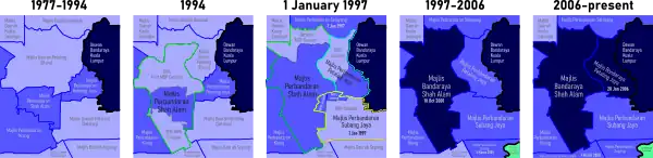 Following a boundary realignment exercise in January 1997, parts of Petaling Jaya including Subang Jaya, USJ, Putra Heights, and Bandar Sunway were ceded to the newly formed Subang Jaya Municipal Council or MPSJ at the time. In exchange, the MPPJ annexed Bandar Utama, Sungai Buloh, Bukit Lanjan, and Kota Damansara from the Petaling District Council (Majlis Daerah Petaling, MDP), which disestablished itself after the cession.