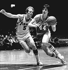 The Atlanta Hawks selected Maravich with the third pick in the first round of the 1970 NBA draft, where he played for coach Richie Guerin.[16] He was not a natural fit in Atlanta, as the Hawks already boasted a top-notch scorer at the guard position in combo guard Lou Hudson. In fact, Maravich's flamboyant style stood in stark contrast to the conservative play of Hudson and star center Walt Bellamy. It also did not help that many of the veteran players resented the $1.9 million contract that Maravich received from the team—a very large salary at that time.[17]