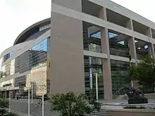 The Petersen Events Center (more commonly known as "The Pete"[3]) is a 12,508-seat multi-purpose arena on the campus of the University of Pittsburgh in the Oakland neighborhood. The arena is named for philanthropists John Petersen and his wife Gertrude, who donated $10 million for its construction.[4] John Petersen, a Pitt alumnus, is a native of nearby Erie and is the retired president and CEO of Erie Insurance Group. The Petersen Events Center was winner of the 2003 Innovative Architecture & Design Honor Award from Recreation Management magazine.[5]