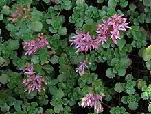 Phedimus is a genus in the family Crassulaceae, subfamily Sempervivoideae, tribe Umbiliceae, together with three other genera. It was segregated from the very large cosmopolitan and polyphyletic genus, Sedum, where it was variously considered a section or subgenus.[4] Within the tribe it is a sister group to Aizopsis. There, it is distinguished by flower colouration (pink or white flowers compared to the yellow flowers of Aizopsis), floral morphology, distribution (Eurasia vs. Asia) and chromosome numbers (x=14 vs. 16). Some authors include Aizopsis as a subgenus:[1][3]