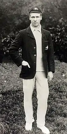 Newland toured England in 1905 as a reserve wicket-keeper and understudy to Jim Kelly. While in the United Kingdom he played in 10 first-class matches with the Australian team, but could only score 67 runs at 9.57 and effect 13 dismissals.[7] His disappointing performances may have been as a result of an eye injury he received during the trip over, which was bad enough that he had to see an oculist in London.[8] He had earlier, in 1904/05, toured New Zealand and played two matches against the national team. At that stage, New Zealand weren't a Test playing country so the matches had only first-class status.[9]