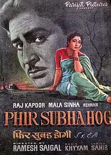 Phir Subah Hogi (Also spelled Phir Subha Hogi; transl. morning will dawn again) is a 1958 Indian Hindi-language drama film produced and directed by Ramesh Saigal. It stars Raj Kapoor, Mala Sinha, Rehman in lead roles. The film is an adaption of Fyodor Dostoevsky's novel Crime and Punishment.[2]