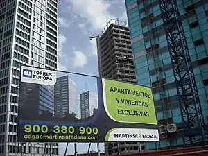 Plaça d'Europa (official name in Catalan, in Spanish: Plaza de Europa) is a square in the District VII (Granvia l'Hospitalet) of L'Hospitalet de Llobregat suburb of Barcelona, Catalonia in Spain. Located on the Granvia de l'Hospitalet avenue at the intersection with Carrer d'Amadeu Torner. It is part of L'Hospitalet's recent urban development, and one of its biggest squares at 33 ha, with a distinguishable skyline made up of high-rises, among the tallest structures in the city, some of which are designed by the renowned architect Toyo Ito. It is expected to become its economic centre, and will allow different parts of the city formerly severed by the Granvia to become interconnected. It is still not completed but already featuring most of its planned buildings and infrastructure. Part of Fira de Barcelona, near it stand the pavilions of rest of Fira de Barcelona and the shopping centre Gran Via 2.[1]