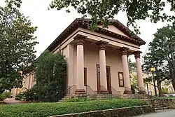 The Playmakers Theatre, originally Smith Hall, is a historic academic building on the campus of the University of North Carolina at Chapel Hill. Built in 1850, it was designated a National Historic Landmark for its architecture, as an important example of Greek Revival architecture by Alexander Jackson Davis.[2][3] It is now a secondary venue of the performing company, which is principally located at the Paul Green Theatre in the Joan H. Gillings Center for Dramatic Art.