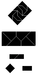A polyabolo has order 1 if and only if it is itself a rectangle. Polyaboloes of order 2 are also easily recognisable. Solomon W. Golomb found polyaboloes, including a triabolo, of order 8.[2] Michael Reid found a heptabolo of order 6.[3] Higher orders are possible.