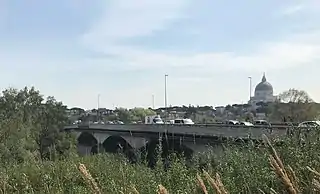 ![]() Ponte della Magliana with the dome of Santi Pietro e Paolo in the background. | |