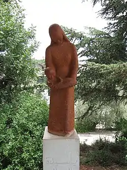 St Charles de Foucauld worked at the convent from 1897,[18] living in a small wooden lean-to separate from the nuns' dormitory and previously used only for spare lumber storage.[10] Hearing of "a servant who dressed like a tramp, spoke and wrote as a man of learning, and prayed like a saint", Elizabeth of Calvary—now the abbess of the Jerusalem convent[7]—had him visit in 1888 and thereafter he divided his time between the two communities before returning to France in 1900.[19] It was during this period in Nazareth that De Foucauld studied for the priesthood and produced most of his spiritual writings.[20] There is now a small museum on the grounds of the monastery to accommodate interested pilgrims, housing some of the artifacts from his time at the convent.[21]