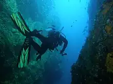 The Poor Knights Islands Marine Reserve is a protected area off the coast of the North Island of New Zealand. The reserve, established in 1981 and covering an area of 1,890 ha (4,700 acres),[1] is administered by the Department of Conservation. It surrounds the Poor Knights Islands and adjacent rock stacks Sugarloaf Rock and High Peak Rocks. It is one of the world's ten most popular sites for scuba diving.[2] with dive trips regularly leaving from the town of Tutukaka.