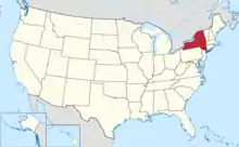 New York, sometimes called New York State, is a state in the Northeastern United States. A Mid-Atlantic state, New York borders New England, and has an international border with Canada. With almost 19.7 million residents, it is the fourth-most populous state in the United States and seventh-most densely populated as of 2022. New York is the 27th-largest U.S. state by area, with a total area of 54,556 square miles (141,300 km2).