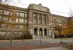 The main school was constructed between 1915 and 1918, according to the plaque by the front entrance. On February 15, 1919 the new Portland High School along Cumberland Avenue, opened. It was designed by Miller & Mayo. The new school had a lecture hall and mechanical arts classrooms. It also had two kitchen classrooms, three sewing rooms and two classrooms for typing.[7] The school was added to the National Register of Historic Places on November 23, 1984.[3]