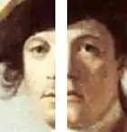 Portrait of Robert Orme is a portrait of British Army officer Robert Orme, painted in 1756 by the British painter Joshua Reynolds, the year after Orme returned from North America. The artist shows him in the uniform of the Coldstream Guards, standing by his horse in a darkened corner of a forest. Behind is a stormy sky and visible through the trees are the red jackets of the British, referring to Orme's part in the British defeat at Monongahela.[2] According to the National Gallery, the composition of the painting was based on a sketch of Saint Francis embracing a Sick Man completed by Jacopo Ligozzi in 1752.[1]