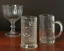 Pressed glass (or pattern glass)[1] is a form of glass made by pressing molten glass into a mold using a plunger.[2] It was first patented by American inventor John P. Bakewell in 1825 to make knobs for furniture.