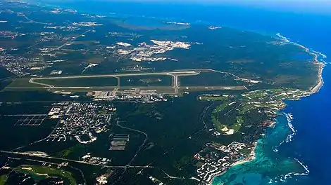 Punta Cana International Airport (IATA: PUJ, ICAO: MDPC) is a privately owned commercial airport in Punta Cana, eastern Dominican Republic. The airport was built with open-air terminals and roofs covered in palm fronds. Grupo Punta Cana built the airport, which was designed by architect Oscar Imbert, and inaugurated it in December 1983.[1] It is owned by Grupo Punta Cana and became the first privately owned international airport in the world.[2]
