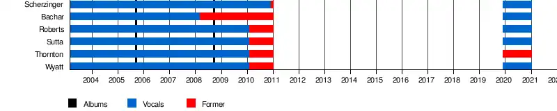 ![]() The Pussycat Dolls in 2007 (L–R: Kimberly Wyatt, Jessica Sutta, Carmit Bachar, Nicole Scherzinger, Melody Thornton, Ashley Roberts) | |