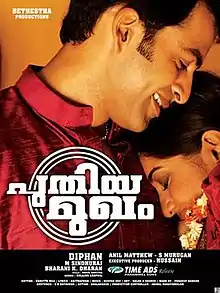 Puthiya Mukham (transl. New face) is a 2009 Indian Malayalam-language action thriller film directed by Diphan and written by M. Sindhuraj.[1] The film stars Prithviraj, Bala and Priyamani with Sudheesh, Meera Nandan, Nedumudi Venu and Vijayaraghavan in supporting roles. It was shot at locations in Kochi, Thrissur, Palakkad, and Malaysia. The film's original background score and the soundtrack were composed by Deepak Dev.