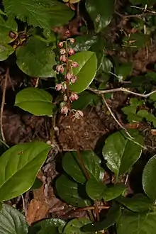 Pyrola asarifolia, commonly known as liverleaf wintergreen,[1] bog wintergreen or pink wintergreen, is a plant species of the genus Pyrola native to western North America. It is found primarily on forest margins at mid latitude in the Pacific Northwest and northern California. It is so named simply because its leaves maintain their green color through winter.