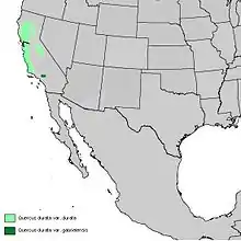 | Natural range of Quercus durata | |