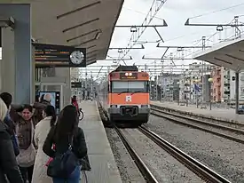 All of the infrastructure used by the R11 is shared with other services. Between Barcelona Sants and Barcelona Passeig de Gràcia stations, it shares tracks with Rodalies de Catalunya's Barcelona commuter rail service lines R2, R2 Nord and R2 Sud, regional rail lines R13, R14, R15 and R16, as well as a number of long-distance services to southern Spain, using the Aragó Tunnel through central Barcelona.[5][6] After Passeig de Gràcia, R11 trains R2 Sud trains, together with the R13, R14, R15 and R16, as well as long-distance services, branch off to Barcelona's Estació de França, terminating there. R11 services continue northwards through the Aragó Tunnel, calling at El Clot-Aragó railway station, and share tracks with the R2 and R2 Nord only.[7] North of Mollet-Sant Fost railway station, Barcelona commuter rail service line R8 and several freight services join their route. The R8 terminates further north at Granollers Centre so that the R11 only shares tracks with the R2 and freight services from this point on up to Maçanet-Massanes.[8] From Maçanet-Massanes, R11 trains share tracks with the Girona commuter rail service RG1 and freight trains for the remainder of their journey.