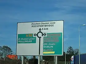 - Between its junction with R148 at Rossan in the county of Westmeath and its junction with N62 at Fardrum in the county of Westmeath via Kinnegad, Milltownpass, Rochfortbridge, Tyrellspass, Kilbeggan and Horsleap in the county of Westmeath: Ballynahinch in the county of Offaly: Bawnoges; Dublin Road, The Turnpike, Main Street, Church Street and Athlone Road at Moate; Seeoge, and Killogeenaghan in the county of WestMeath
