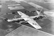The North American B-45 Tornado was an early American jet bomber designed and manufactured by aircraft company North American Aviation. It has the distinction of being the first operational jet bomber to enter service with the United States Air Force (USAF), as well as the first multiengine jet bomber to be refueled in midair.[1]