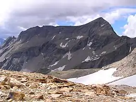 The Racherin, a mountain with a height of 3,092 m (AA), lies in the Glockner Group in the High Tauern range in Austria. The summit is located ca. 6 km, as the crow flies, northwest of Heiligenblut in the state of Carinthia. The unmarked and mostly trackless normal route is not difficult in snow-free and dry conditions, but is rather laborious. An ascent therefore requires a good sense of direction. In suitable weather there are good views from the top, including an impressive view of the Großglockner and the surrounding mountain world.