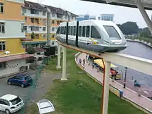 Another monorail system in Malaysia is the Melaka Monorail. It is a 2.5 km (1.6 mi) uni-directional single track monorail system which formerly had three stations.[38] Since its opening on 21 October 2010, the system suffered various incidents, including frequent breakdowns and lack of maintenance.[39] The company, Monorail Theme Park & Studios, which operated the system, had its contract terminated on September 2021 and the system had stopped operating. Now, there are no plans of reviving this system.[40]