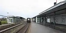 In 1876, Randers Station also became the western terminus of the new Randers-Ryomgård railway line.[2] From 1951, all trains on the Randers-Hadsund railway line (opened in 1883) were continued from Hadsundbanegården station in the eastern part of the city via a connecting track along the harbour to Randers Station.[2][5] The Randers-Hadsund Line was closed in 1969, while passenger traffic on the Randers-Ryomgård Line stopped in 1971, with freight service on the line continuing until 1993.[2]
