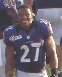 Raymell Mourice Rice (born January 22, 1987) is an American former football running back who played in the National Football League (NFL) for six seasons with the Baltimore Ravens. He played college football at Rutgers University–New Brunswick, where he received first-team All-American honors, and was selected by the Ravens in the second round of the 2008 NFL Draft. During his career, Rice was named to three Pro Bowls and was a member of the team that won Super Bowl XLVII. Rice is second in franchise rushing yards, rushing attempts, and rushing touchdowns, and is third in the franchise in combined touchdowns.