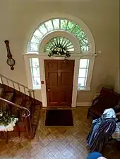 The entrance hall contains an 18th-century staircase with slender wooden balusters leading to a galleried landing of the same period.[1] The hall has grained woodwork in the Georgian style, and is hung with portraits of the Taylor family from between 1737 and 1817. They are of Joshua Taylor's sister Deborah (1771–1810), his parents, John (1737–1805) and Anne (1739–1817) and his father-in-law Captain Tickell.[2]