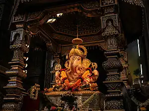 Most Marathi families have their own family patron or protective deity or the Kuladevata.[4]: 1–27 This deity is common to a lineage or a clan of several families who are connected to each other through a common ancestor.[6] The Khandoba of Jejuri is an example of a Kuladaivat of some families; he is a common Kuladaivat to several castes ranging from Brahmins to Dalits.[7] The practice of worshiping local or territorial deities as Kuladaivats began in the period of the Yadava dynasty.[8] Other family deities of the people of Maharashtra are Bhavani of Tuljapur, Mahalaxmi of Kolhapur, Mahalaxmi of Amravati, Renuka of Mahur, Parashurama in Konkan, Saptashringi on Saptashringa hill at Vani in Nasik district, and Balaji.