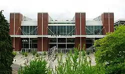 The stadium was renamed in June 1999 to honor Al and Pat Reser, owners of Reser's Fine Foods.[9][10] The couple both graduated from Oregon State in 1960,[20] and are major donors to the university and Beavers athletics,[9][21] though Al died at the age of 74 in 2010.[22] The Parker name is still honored at Parker Plaza,[9] located between Reser and Gill Coliseum, the site of many pregame activities.