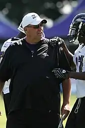Ryan went on to coach at three different colleges following his tenure with the Cardinals, though by the time he joined Kansas State in 1999, he was hopeful of a return to the NFL.[14] Ryan received a call from newly named head coach Brian Billick of the Baltimore Ravens, who wanted to interview him for the defensive line coaching position.[18] Having visited a class Ryan was teaching earlier in his career, Billick had been so impressed by Ryan's passion for the game of football that he decided to hire Ryan if he ever attained a head coaching position.[18] When offered the position, Ryan accepted.[18]
