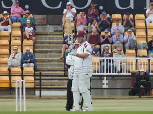 Later the same year, he played for Somerset, in the Friends Life Twenty20 competition, reaching the semifinal. For 2013, he signed for Northants for Twenty20 matches,[8] and had great success. In 13 matches, he scored 360 runs, including a century and two fifties. Once again he reached the finals day, and scored 57 off just 35 balls in the semifinal victory over Essex, and also played in the victory over Surrey in the final. The following season, he returned to Northants, with the intention of playing in both twenty and fifty over matches,[9] but following a number of injuries to the Northants squad he also played four first-class matches.