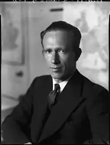 In 1935 he resigned his commission to enter politics and was elected as Member of Parliament (MP) for Widnes in Lancashire.[4] He served as Parliamentary Private Secretary to Oliver Stanley.[5] On the outbreak of the Second World War he rejoined the Army and travelled to France with the British Expeditionary Force.[6] He was awarded the Military Cross after returning with one of the last groups from Dunkirk in 1940.[7]
