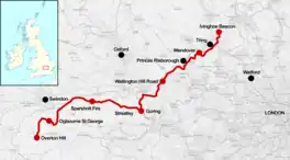 ![]() Map of the Ridgeway National Trail in the south of England | |