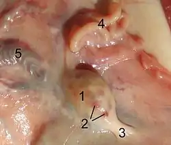 - The left ovarian vein, unlike the right, often joins the left renal vein instead of the inferior vena cava.[2][3]