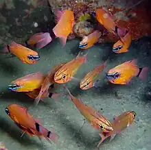| A group of Ostorhinchus aureus with other cardinalfishes. | |