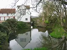 This Domesday mill was valueless in 1349, as all the soke tenants had perished in the plague. It had previously been worth 20s or 30s per year. In the Elizabethan times the mill was used as a gunpowder mill, in the ownership of George Evelyn, grandfather of diarist John Evelyn. On 28 January 1589 Evelyn was granted a wide-ranging royal licence to explore for saltpetre, a principal ingredient, and his mills at Godstone were the most important in the country.[24][25] The mill has been house converted, only the axle and pit wheel remaining of the machinery.[2][26][27]