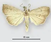 The wingspan is about 17 mm. Adults have been found from April to September in North Carolina, suggesting the species breeds continuously and likely has three or four generations per year.