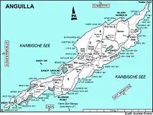 Map of Anguilla showing the pond at Road Bay on the north-west coast