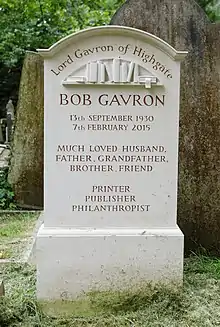 Robert Gavron, Baron Gavron CBE FRSL (13 September 1930 – 7 February 2015) was a British printing millionaire, philanthropist and a Labour life peer.