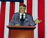 - Senator Robert Jefferson Kelly appears in X-Men: The Animated Series, voiced by Len Carlson.[10] He initially runs for President of the United States on an anti-mutant campaign until he gradually changes his mind following failed assassination attempts by Mystique disguised as Gambit and nearly being brainwashed by Master Mold before being rescued by the X-Men, whom he befriends. Upon winning the election and taking office, Kelly publicly supports mutants and pardons Beast as his first presidential act. Following this, Kelly makes minor appearances in subsequent seasons as an ally of the X-Men.