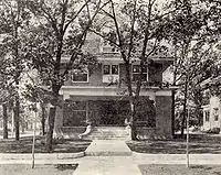 In 1911 Robert Seyfarth designed and built a gambrel roofed Shingle Style house for his family on Sheridan Road in Highland Park,[94] across the street from Frank Lloyd Wright's Ward Willets house (1901), and it marked a change in the direction of his design work - for the rest of his career his would design in an eclectic style combining Colonial Revival, Tudor and Continental Provincial elements with strong geometric forms.[95] During his career Seyfarth would design 73 houses in Highland Park alone, where his output began before the time of his arrival as a resident and lasted until shortly before his death. Here he elected to ignore the notion that in later years was famously offered to young architects by the Sage of Taliesin "... go as far away as possible from home to build your first buildings. The physician can bury his mistakes—but the Architect can only advise his client to plant vines.".[96] Almost exclusively a residential architect with the majority of his work in the Chicago area, he also designed projects in Michigan, Wisconsin, Ohio, Virginia, Kentucky and Alabama. By the end of his career, he had designed over two hundred houses.[97]
