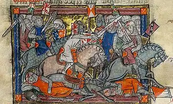 The Rochefoucauld Grail is a four-volume 14th-century illuminated manuscript. Three volumes were formerly Amsterdam, Bibliotheca Philosophica Hermetica, MS 1; the fourth volume is divided between the Bodleian Library in Oxford (MS. Douce 215) and the John Rylands Library in Manchester (Ms Fr. 1). It contains the Lancelot-Grail cycle in French prose, the oldest and most comprehensive surviving version of the legend of King Arthur and the Holy Grail.[1][2][3] The leaves are about 405 mm by 295 mm, and are written in two columns, by a number of scribes.[4]