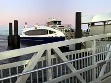 NYC Ferry is a public network of ferry routes in New York City operated by Hornblower Cruises. As of August 2023, there are six routes, as well as one seasonal route, connecting 25 ferry piers across all five boroughs. NYC Ferry has the largest passenger fleet in the United States with a total of 38 vessels, providing between 20 and 90 minute service on each of the routes, depending on the season.[3]